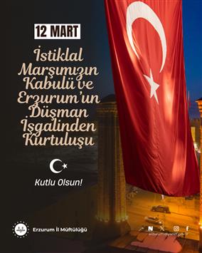 Bağımsızlığımızın sembolü İstiklal Marşı’mızın kabulünün 105. yıl dönümünü kutluyor; aynı azimle vatan toprağını savunan Erzurum’un düşman işgalinden kurtuluşunun 108. yılını selamlıyoruz