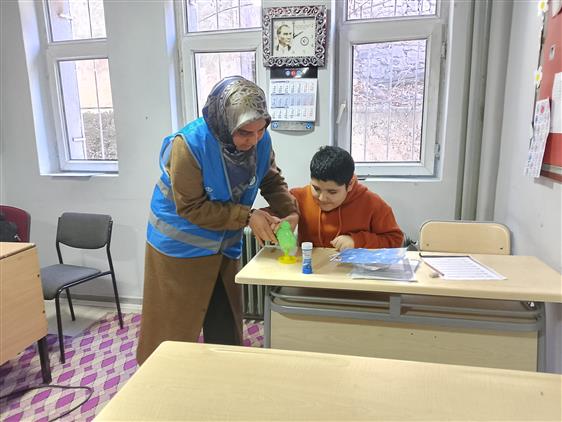 3 Aralık Dünya Engelliler Günü kapsamında İlçe Müftümüz Sayın Veysel Çelebi ve TDV Kadın Gönüllüleri Başkanı Emine Korkutan, ilçemiz Şehitler İlkokulu’nda bulunan özel eğitim sınıfını ziyaret etti.