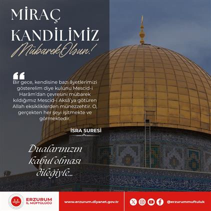 "Bir gece, kendisine bazı âyetlerimizi gösterelim diye kulunu Mescid-i Harâm’dan çevresini mübarek kıldığımız Mescid-i Aksâ’ya götüren Allah eksikliklerden münezzehtir. O, gerçekten her şeyi işitmekte ve görmektedir."