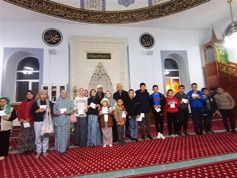 İlçemiz Akşar Mahallesi Yeni Camiinde teravih namazlarını aksatmadan eda eden 22 genç kardeşimize bayram harçlığı verildi.