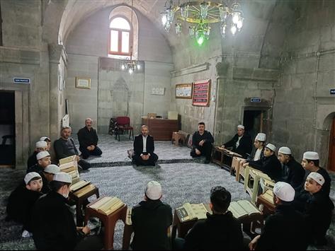 İlçe Müftümüz S. ŞAHİN Hocamız, tarihî ve kadim ilim yuvalarımızdan Ahmediye Medresesi ve Kur’an Kursu’nu ziyaret etti. Ziyaret kapsamında hafızlarımızla bir araya gelerek samimi bir ortamda sohbet ve hasbihalde bulundu.